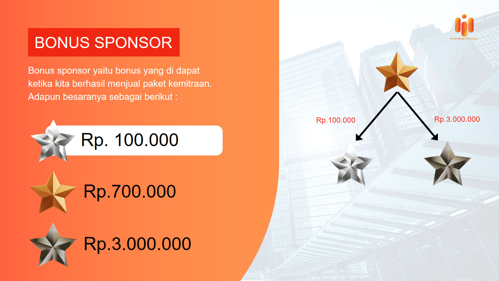 PT. Inti Megah Teknologi ( IMTECH ) Merupakan sebuah perusahaan perdagangan berbasis jaringan serta PLATFORM BUSINESS dengan berbasis Community yang sadar akan pentingnya sebuah investasi, memiliki sebuah system yang mampu memberikan KESEJAHTERAAN kepada para mitra-mitranya memberikan kepastian pendapatan dengan PENGAHARGAAN atas keberhasilan yang spektakuler.